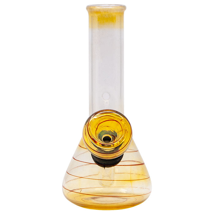 Mini Travel glass bong, yellow tinted with blue swirling design Color changes while smoking. This Mini bong is made up of high grade glass and is 4 Inches long with a thickness of 4mm