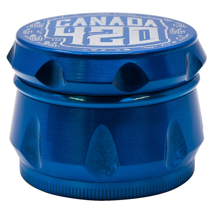 Crown Blue Canada 420 Grinder. Grinders Are All One Solid Piece Of Aluminum, So No Need To Worry About The Blade Plate Coming Loose And Just Spinning In Place. This Classic Design Uses Diamond Cut Teeth To Crush Your Herbs Into A Perfectly Blended Fluffy Consistency, Keeping Your Fingers Clean And Your Bowls Evenly Distributed.The Grip Quality Is Absolutely Phenomenal.