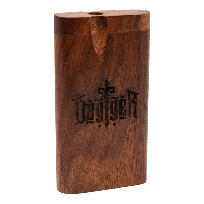 This is Dagger wooden dugout having size 4 inches. It comes with one hitter. This box is designed into two separate sections. The slide out section of the box stores one hitter and is spring-loaded so the one-hitter pops out. Also, you can hold some cannabis in other separation of the wooden box.