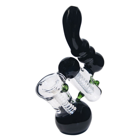 Heavy glass double chamber bubbler with spiral design. Height: 7 inches