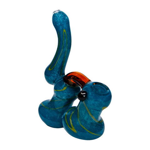 Frit Work Blue Color Glass Bubbler With Yellow Stripes Catches Attention