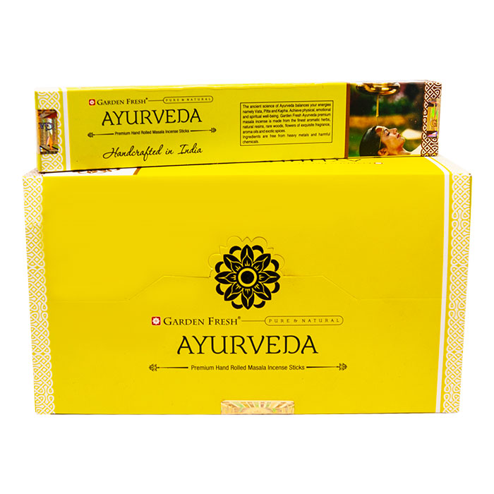 The ancient science of Ayurveda balances your energies namely Vata, Pitta and Kapha. Achieve physical, emotional and spiritual well-being. Garden Fresh Ayurveda premium masala incense is made from the finest aromatic herbs, natural resins, rare woods, flowers of exquisite fregrance, aroma oils and exotic spices.