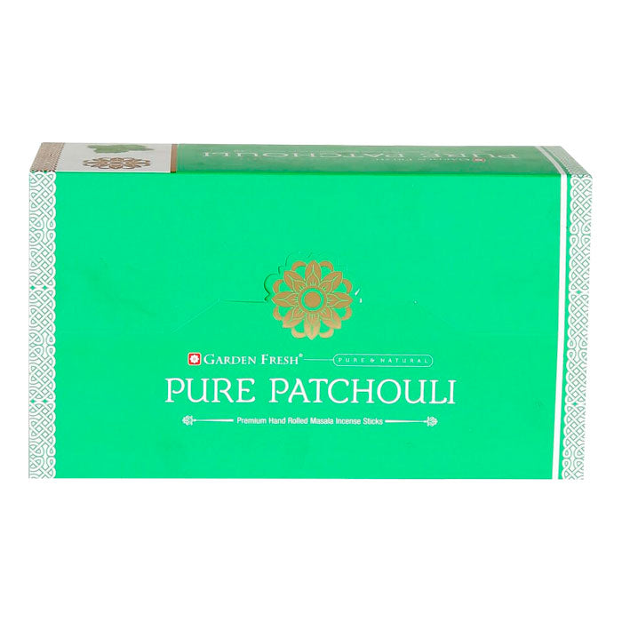 The strong earthy, versatile and unique fragrance of patchouli has a grounding and mood harmonizing effect you. Find your balance. Garden Fresh Pure Patchouli Premium Masala Incense is made from the finest aromatic herbs, natural resins, rarewoods, flowers of exquisite fragrance, aromaoils and exotic spices.
