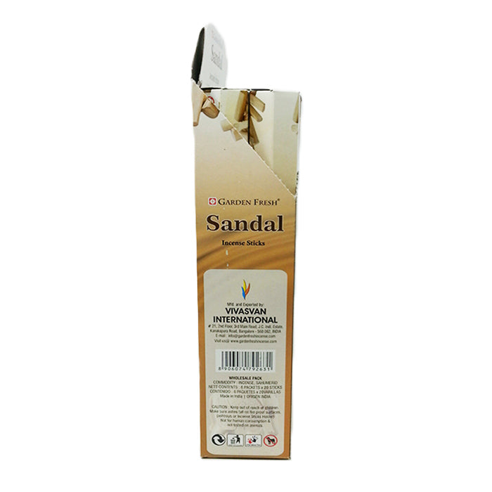 Garden Fresh Sandal Incense Sticks Display Of 6 Packs. Each Pack Contains 20 sticks.