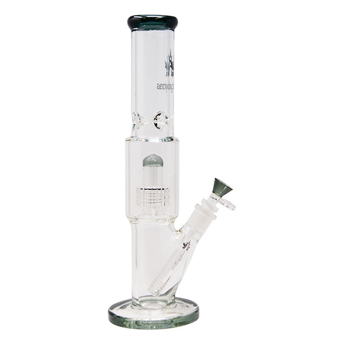 Gray Maple Glass tire percolator bong 14 inches tall comes with matching bowl. It is made of heavy glass having weight 1130Gm. It has ice catcher to give you cool smoke. It comes with colored mouth tip and base.