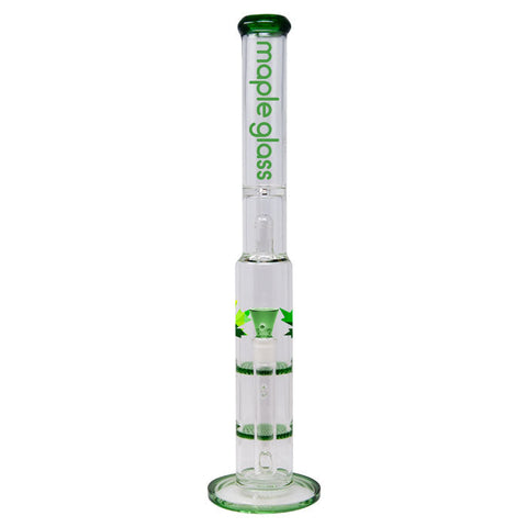 This is a Maple Glass Green Colored Double Honey Comb Bong With Splash Guard. This is Premium Quality hand made water Pipe from the house of Maple Glass. Height of this bong is approximately  22 Inches and it holds a thickness of 9mm. This Cylindrical Bong has been designed in Canada