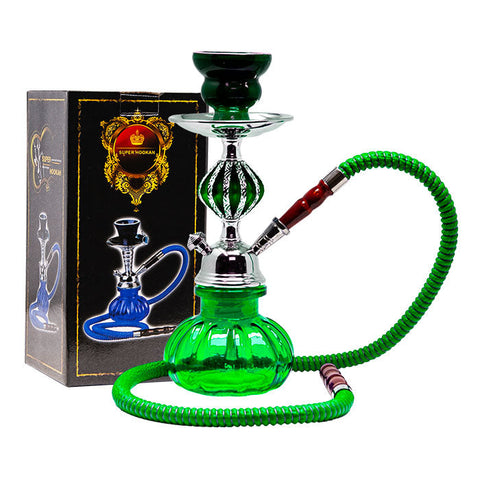 This hookah set comes with green washable ceramic bowl, green silicone/rubber hose with wooden handles, ash tray, and a tong. You just need to get coals and hookah tobacco to enjoy smoke with it.