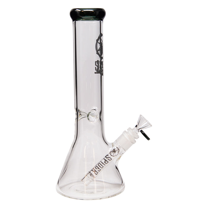 This is Grey Spider Glass Bong which is manufactured using premium quality glass. This bong is approximately 12 inches long and hold a thickness of 5.5mm. This beaker shaped bong comes with an Ice catcher and joint size of 14mm