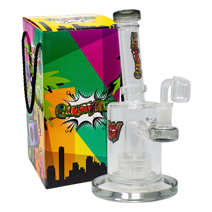 Grey Tilt-Head Small Bong and Dab Rig With Showerhead Perc Is 8.5 Inches In Height Having 4 Inches Diameter Base. It Comes In 5mm Thick Glass.