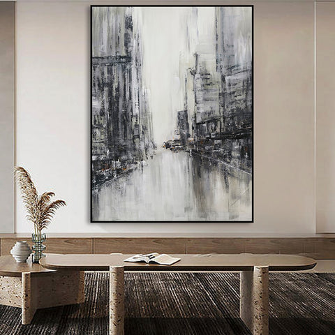Hand Painted Picture Wall Art Paintings On Canvas Abstract Street Landscape Home Decor Buliding Art Pinting For Living Room
