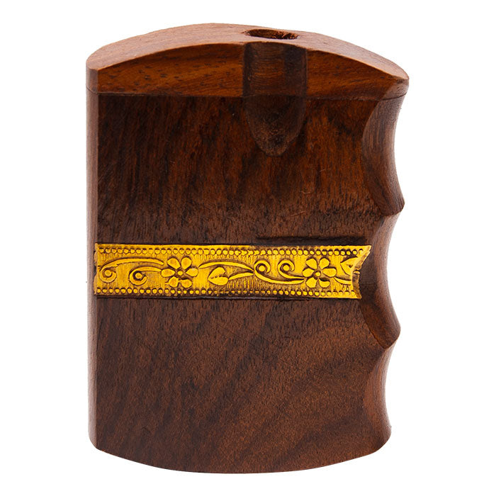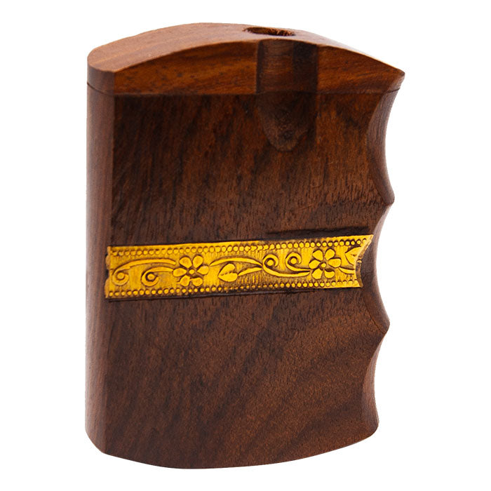 This is wooden dugout with golden strip having size 3 inches. It comes with one hitter. This box is designed into two separate sections. The slide out section of the box stores one hitter and is spring-loaded so the one-hitter pops out. Also, you can hold some cannabis in other separation of the wooden box.