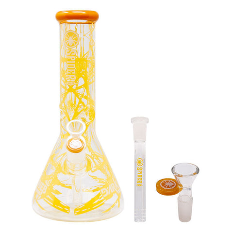This nice-looking Bong has a pleasing spider web design. Crafted from artisan hand, come with a ice notches capable of holding ice cubes and helps to cool the smoke. This bong is available 10 different colors.