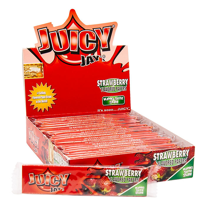 Juicy Jay Rolling Papers Strawberry King Size Contains 24 Packs per box.