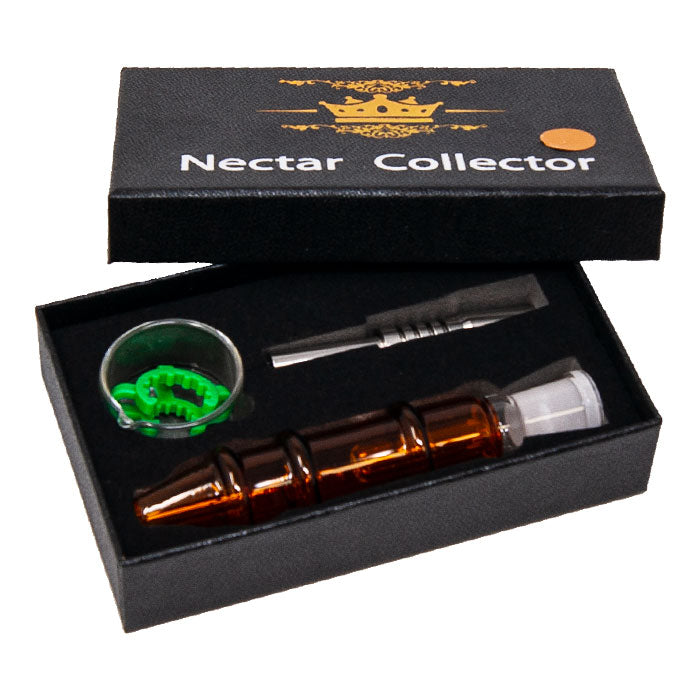 A 14MM King Nectar Collector Gift Set Includes: Black Gift Box, Glass Nector Collector With an In-built Hole, 14MM Titanium Tip, A Clear Glass Bowl and Plastic Dab Tips