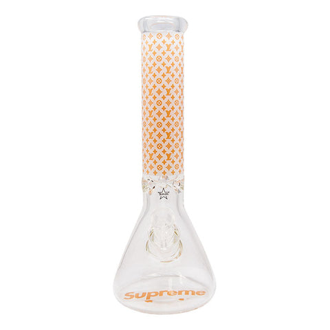 LV 9mm Thick Cream Color Glass Beaker Bong 14 Inches