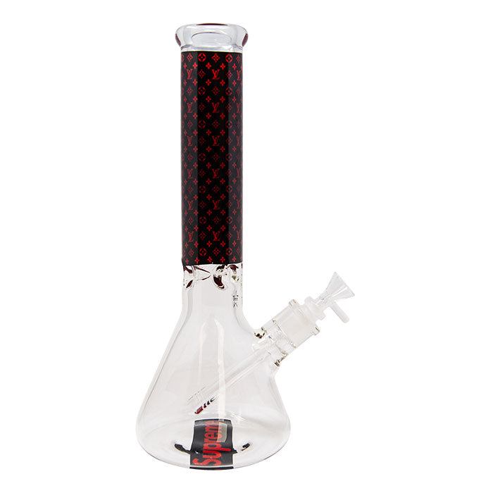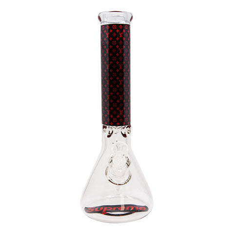LV 9mm Thick Red Color Glass Beaker Bong 14 Inches