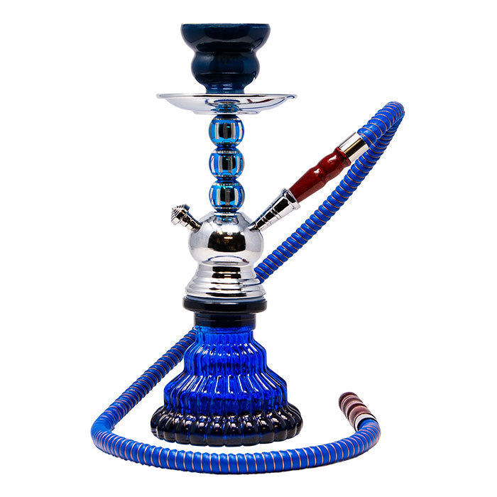 This hookah set comes with blue washable ceramic bowl, blue silicone/rubber hose with wooden handles, ash tray, and a tong. You just need to get coals and hookah tobacco to enjoy smoke with it.