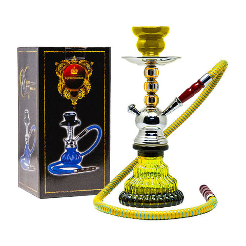 A gorgeous one hose hookah, comes with silicone/rubber hose with freely bendable wooden handles. Height of this hookah is 12 inches and weight is approximaely 630Gm.