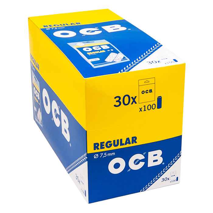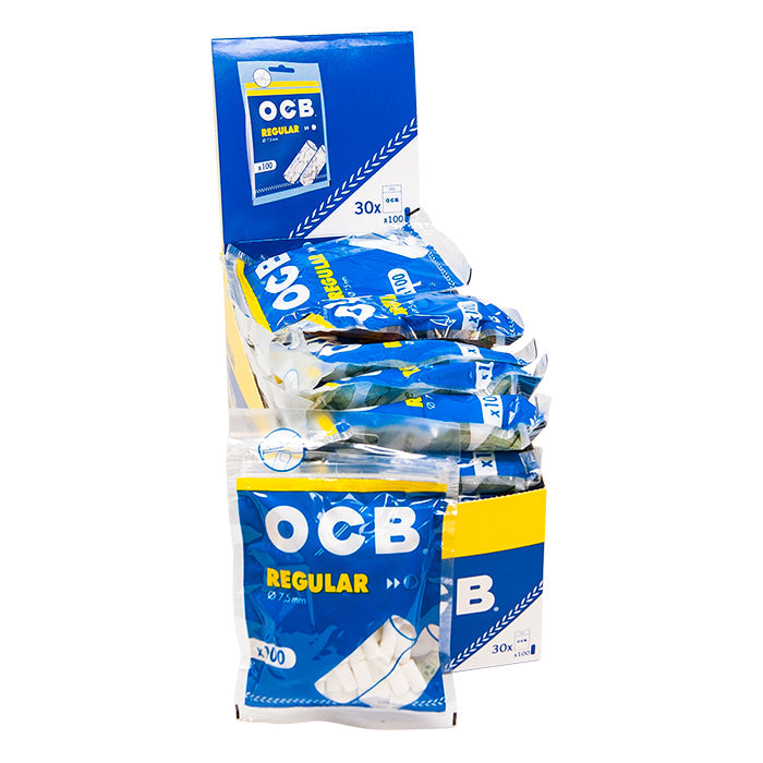 OCB Regular Filter Display Of 30 Pack. Each Pack Contains 100 Filters.