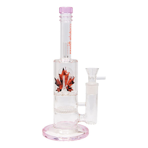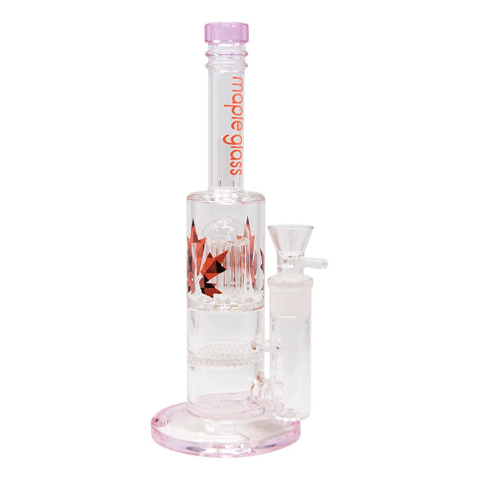 Maple Glass Pink Bong 12 Inches With Tree Perculator. Premium Quality Hand made Water Pipe From The House Of Maple Glass. This Maple Glass is Designed in Canada and is approximately 9mm thick