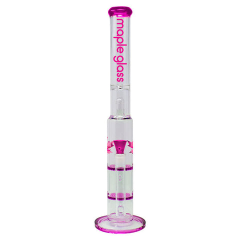 This is a Maple Glass Pink Colored Double Honey Comb Bong With Splash Guard. This is Premium Quality hand made water Pipe from the house of Maple Glass. Height of this bong is approximately 22 Inches and it holds a thickness of 9mm. This Cylindrical Bong has been designed in Canada