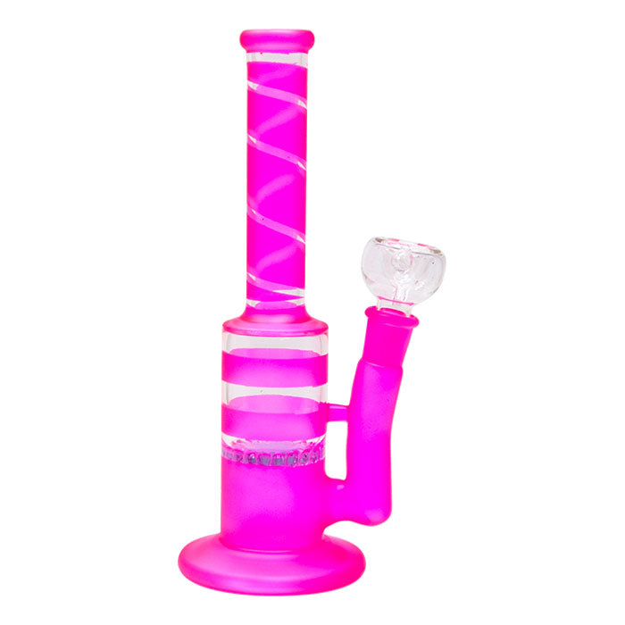 The Pink Mini Straight Tube Honeycomb water pipe comes with a built in honeycomb percolator that provides you with a smooth and cool hits, which you would love. The water has a cooling effect, removing the harsh taste from the smoke before it passes through the honeycomb percolator. The bong comes with a sturdy base keeping the water pipe stable, while the long thin mouthpiece keeps your lips dry while smoking. This beautiful bong has in-built stem.