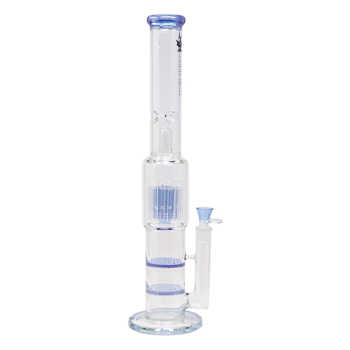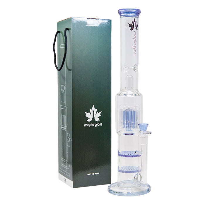 Purple Maple Glass Double Honey Comb Perc With Tree Perc And Splash Guard 20 Inches