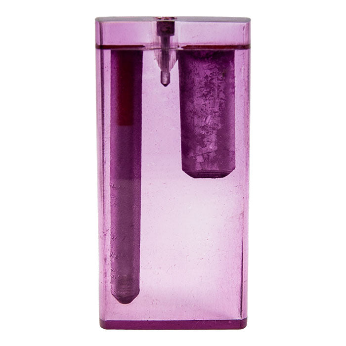 This is purple acrylic dugout having size 4 inches. It comes with one hitter. This box is designed into two separate sections. The slide out section of the box stores one hitter and is spring-loaded so the one-hitter pops out. Also, you can hold some cannabis in other separation of the acrlylic box. These comes in beautiful colors.