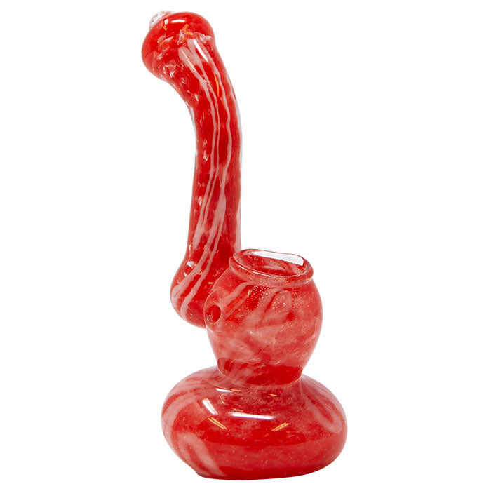 Red Colored Light Pink Stripped Insideout Mini Glass Bubbler