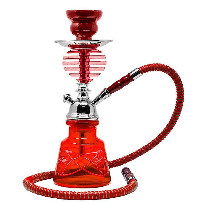 This hookah set comes with red washable ceramic bowl, red silicone/rubber hose with wooden handles, ash tray, and a tong. You just need to get coals and hookah tobacco to enjoy smoke with it.