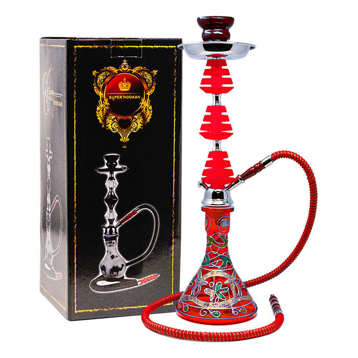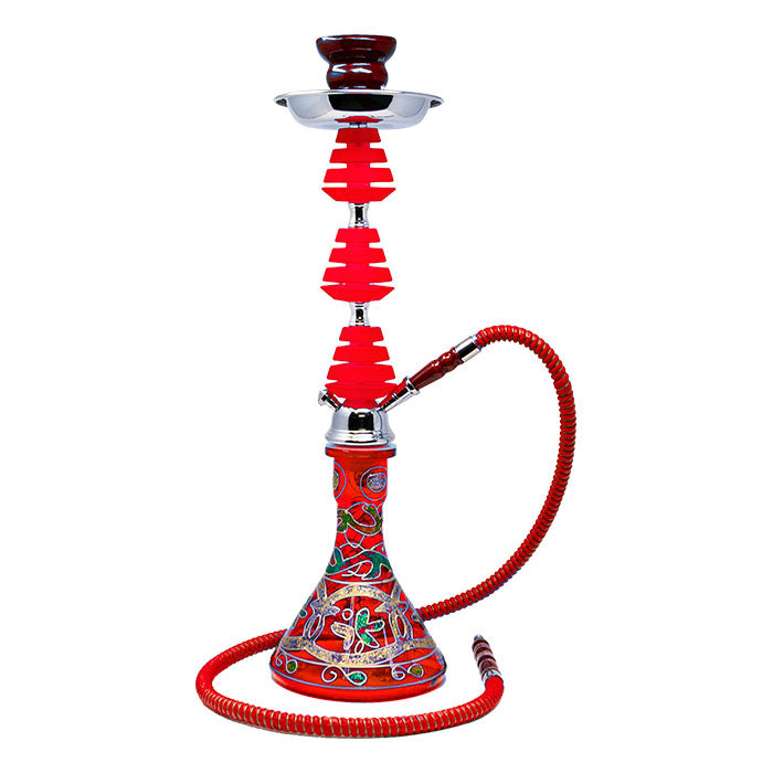 Red Glass Base with Green Leaves Hookah 22 Inches