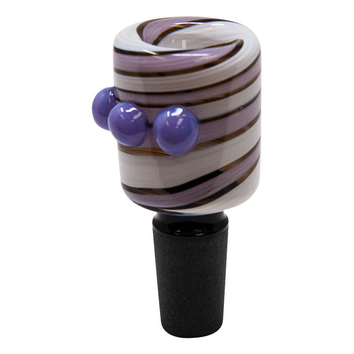 This bowl is made of reverse art of purple and white color having size 14mm. It is easy to fit on all bongs. It comes in different colors. You can buy other color on our website maplecraft.ca