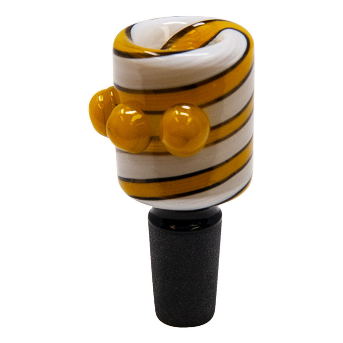 This bowl is made of reverse art of yellow and white color having size 14mm. It is easy to fit on all bongs. It comes in different colors. You can buy other color on our website maplecraft.ca